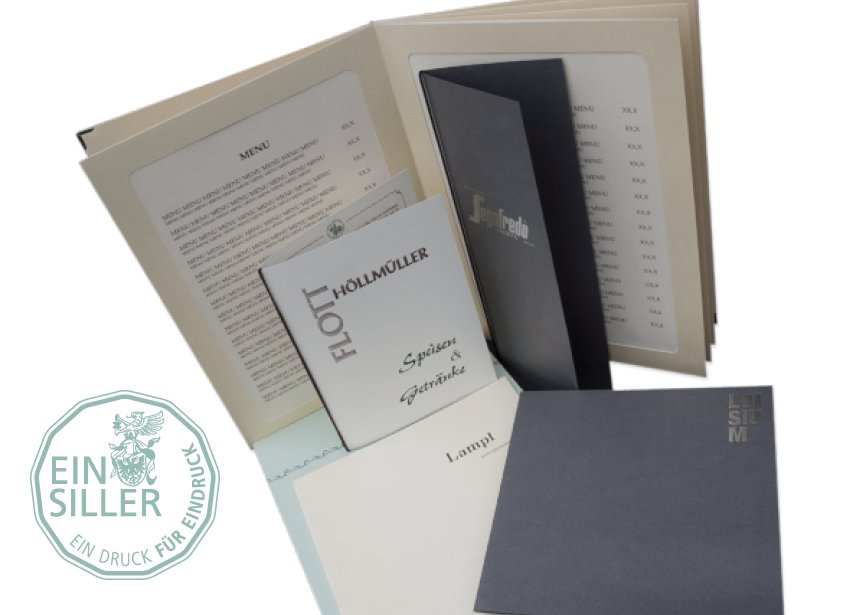 Speise-, Dessert- und Getränkekarten, Tischkärtchen, Einladungen, Gutscheine, …